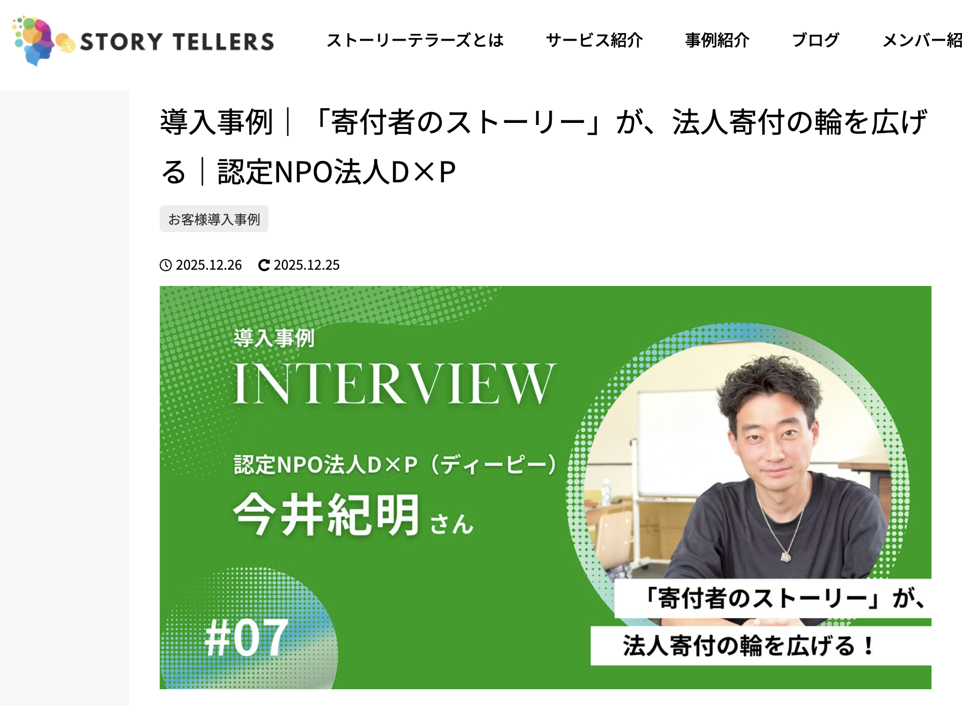 2025年12月26日(金)「ストーリーテラーズ」に、D×Pの活動を掲載いただきました。
