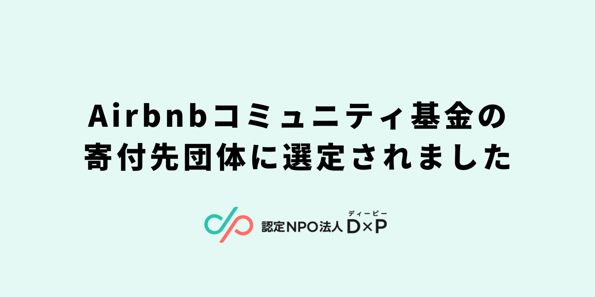 このたび、認定NPO法人D×P(ディーピー)は、Airbnbが実施する「Airbnbコミュニティ基金」の寄付先団体に選定されました。